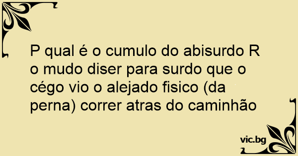 P qual é o cumulo do abisurdo R o mudo diser para surdo que o cégo vio o alejado fisico (da perna) correr atras do caminhão