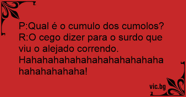 R:O cego dizer para o surdo que viu o alejado correndo. Hahahahahahahahahahahahahahahahahahaha!