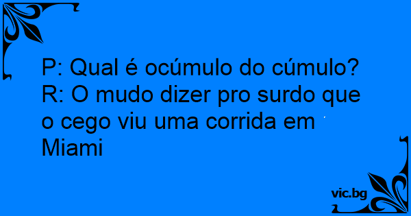 R: O mudo dizer pro surdo que o cego viu uma corrida em Miami