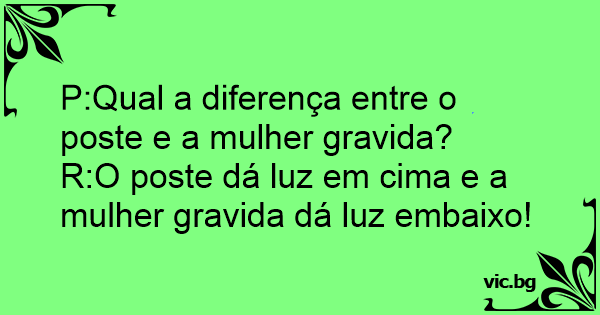 R:O poste dá luz em cima e a mulher gravida dá luz embaixo!