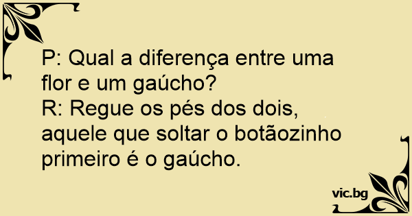 R: Regue os pés dos dois, aquele que soltar o botãozinho primeiro é o gaúcho.