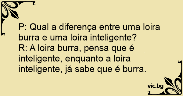 R: A loira burra, pensa que é inteligente, enquanto a loira inteligente, já sabe que é burra.