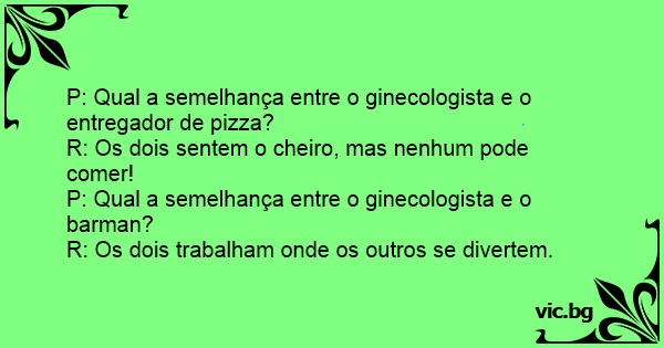 P: Qual a semelhança entre o ginecologista e o entregador de pizza?