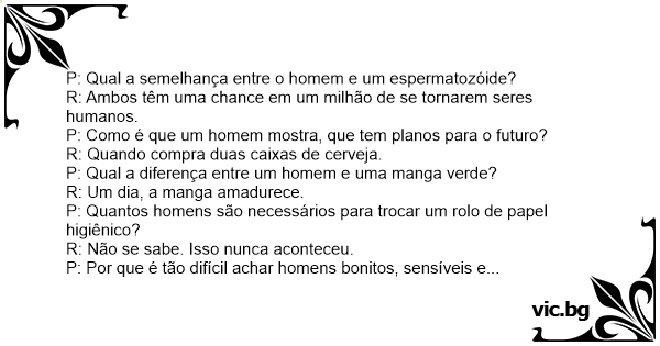 P: Qual a semelhança entre o homem e um espermatozóide?