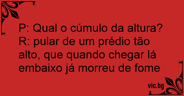 R: pular de um prédio tão alto, que quando chegar lá embaixo já morreu de fome