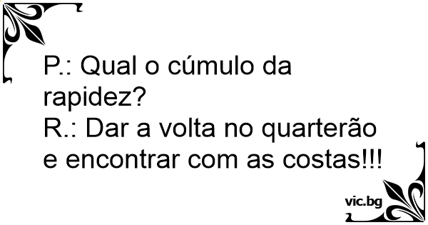R.: Dar a volta no quarterão e encontrar com as costas!!!