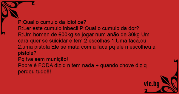 R:Ler este cumulo inbecil P:Qual o cumulo da dor?
