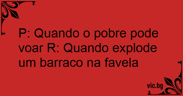 P: Quando o pobre pode voar R: Quando explode um barraco na favela