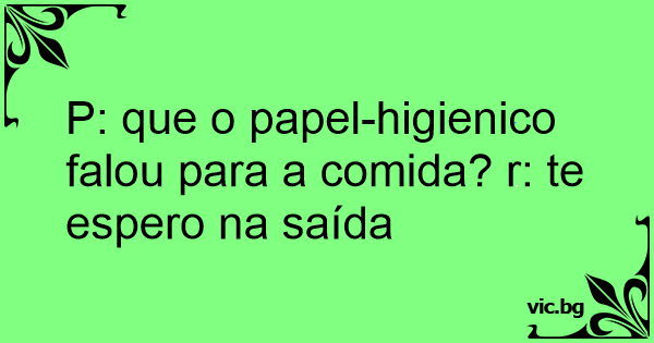 P: que o papel-higienico falou para a comida? r: te espero na saída