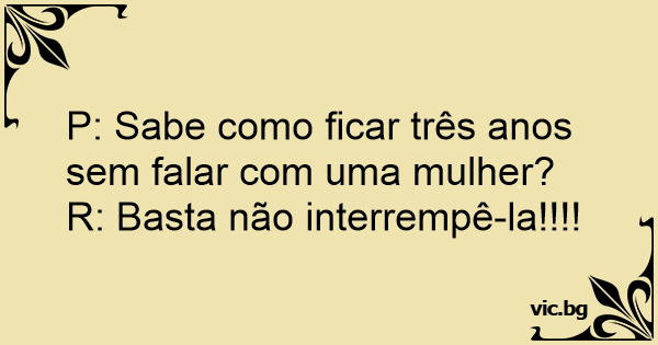 P: Sabe como ficar três anos sem falar com uma mulher?