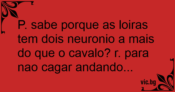 P. sabe porque as loiras tem dois neuronio a mais do que o cavalo? r. para nao саgаr andando...