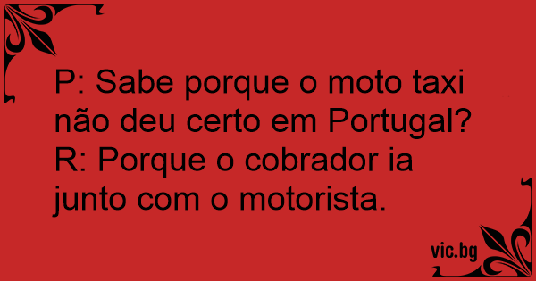 P: Sabe porque o moto taxi não deu certo em Portugal?