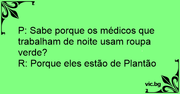 P: Sabe porque os médicos que trabalham de noite usam roupa verde?