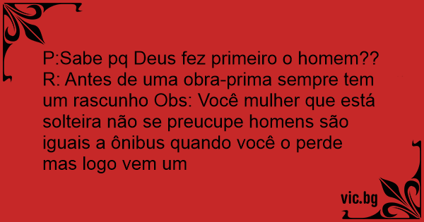 P:Sabe pq Deus fez primeiro o homem??