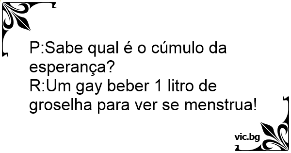 R:Um gаy beber 1 litro de groselha para ver se menstrua!