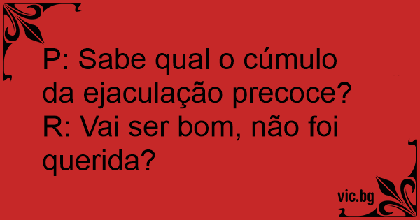 P: Sabe qual o cúmulo da ejaculação precoce?