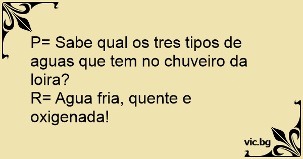 P= Sabe qual os tres tipos de aguas que tem no chuveiro da loira?