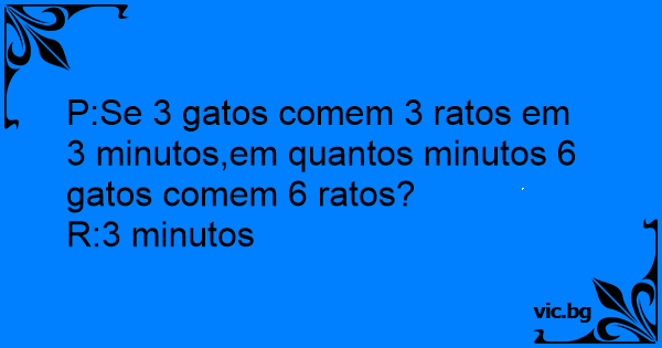 P:Se 3 gatos comem 3 ratos em 3 minutos,em quantos minutos 6 gatos comem 6 ratos?