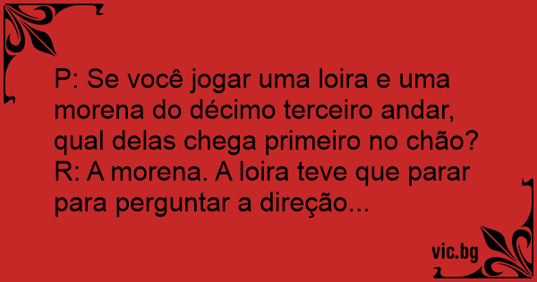 P: Se você jogar uma loira e uma morena do décimo terceiro andar, qual delas chega primeiro no chão?
