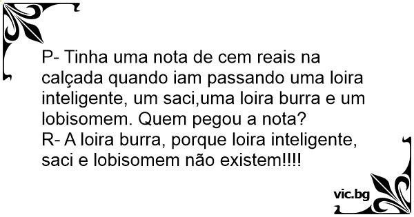 R- A loira burra, porque loira inteligente, saci e lobisomem não existem!!!!