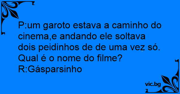 P:um garoto estava a caminho do cinema,e andando ele soltava dois peidinhos de de uma vez só.