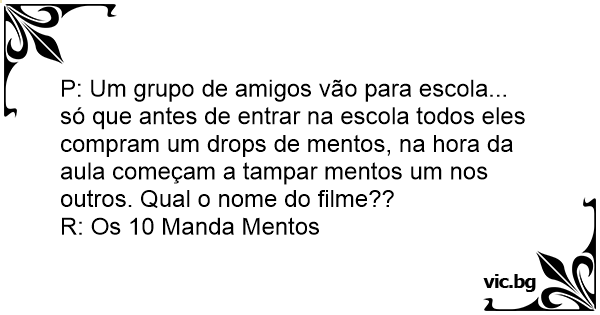 P: Um grupo de amigos vão para escola... só que antes de entrar na escola todos eles compram um drops de mentos, na hоrа da aula começam a tampar mentos um nos outros. Qual o nome do filme??