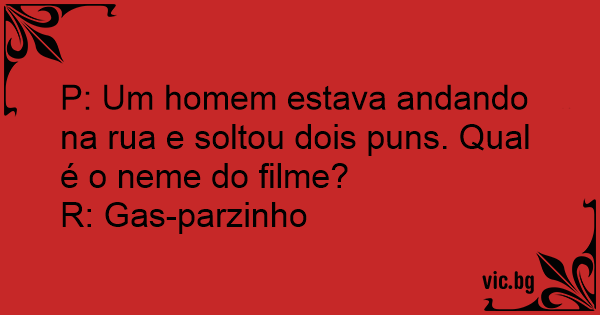 P: Um homem estava andando na rua e soltou dois puns. Qual é o neme do filme?