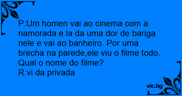 P:Um homen vai ao cinema com a namorada e la da uma dor de bariga nele e vai ao banheiro. Por uma brecha na parede,ele viu o filme todo. Qual o nome do filme?