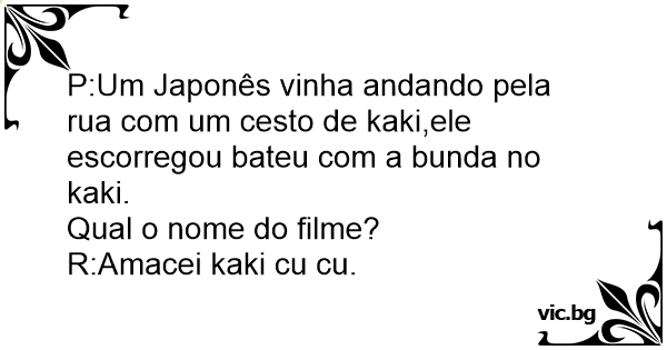 P:Um Japonês vinha andando pela rua com um cesto de kaki,ele escorregou bateu com a bunda no kaki.