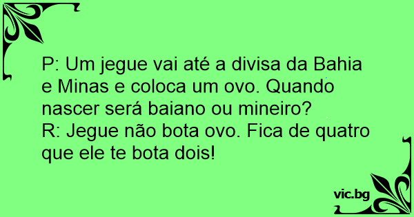 P: Um jegue vai até a divisa da Bahia e Minas e coloca um ovo. Quando nascer será baiano ou mineiro?
