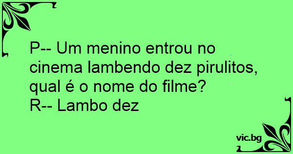 P-- Um menino entrou no cinema lambendo dez pirulitos, qual é o nome do filme?