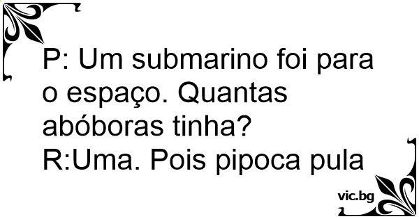 P: Um submarino foi para o espaço. Quantas abóboras tinha?
