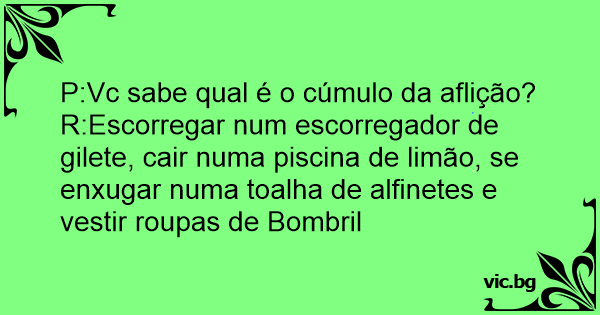 R:Escorregar num escorregador de gilete, cair numa piscina de limão, se enxugar numa toalha de alfinetes e vestir roupas de Bombril