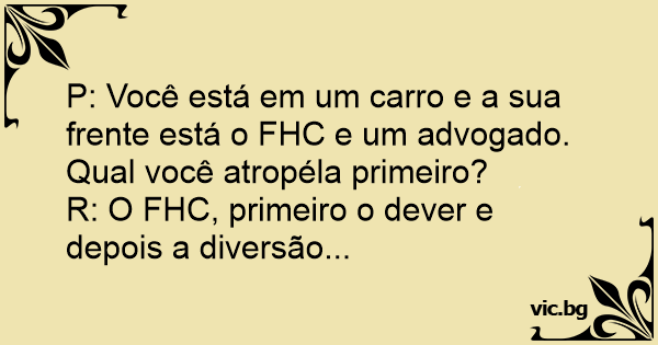P: Você está em um carro e a sua frente está o FHC e um advogado. Qual você atropéla primeiro?