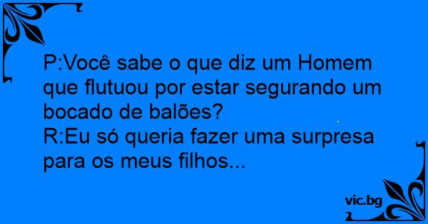 P:Você sabe o que diz um Homem que flutuou por estar segurando um bocado de balões?