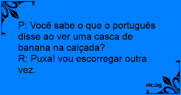 P: Você sabe o que o português disse ao ver uma casca de banana na calçada?