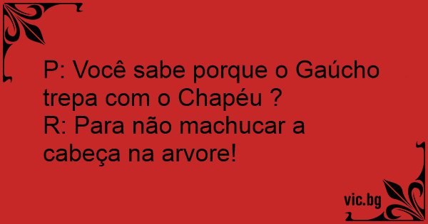P: Você sabe porque o Gaúcho trepa com o Chapéu ?