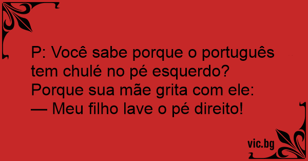 P: Você sabe porque o português tem chulé no pé esquerdo?