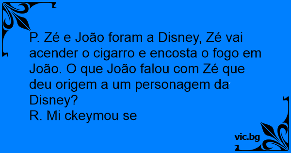 P. Zé e João foram a Disney, Zé vai acender o cigarro e encosta o fogo em João. O que João falou com Zé que deu origem a um personagem da Disney?