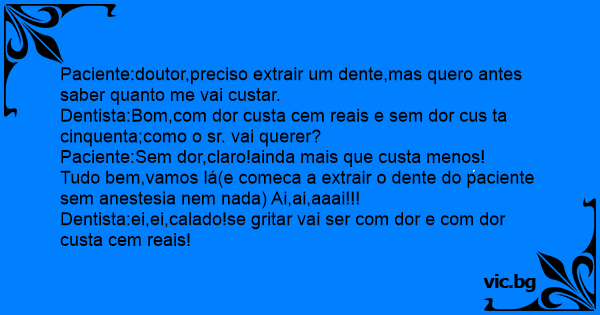 Paciente:doutor,preciso extrair um dente,mas quero antes saber quanto me vai custar.