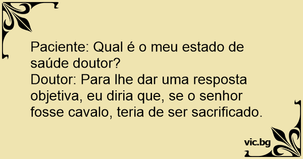 Doutor: Para lhe dar uma resposta objetiva, eu diria que, se o senhor fosse cavalo, teria de ser sacrificado.