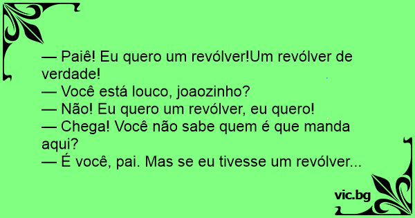 — Paiê! Eu quero um revólver!Um revólver de verdade!