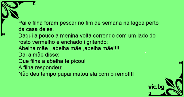 Daqui a pouco a menina volta correndo com um lado do rosto vermelho e enchado i gritando: