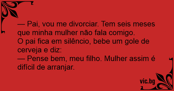 — Pense bem, meu filho. Mulher assim é difícil de arranjar.