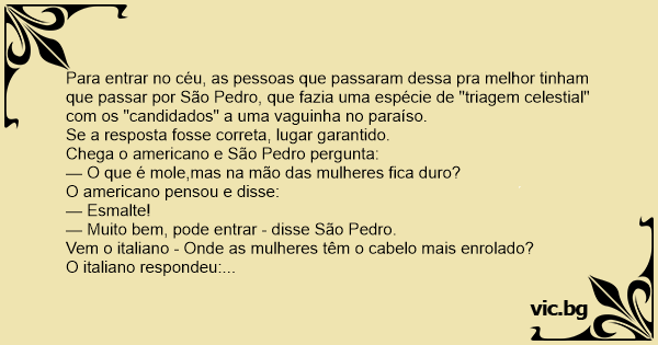 — Muito bem, pode entrar - disse São Pedro.