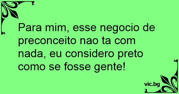 Para mim, esse negocio de preconceito nao ta com nada, eu considero preto como se fosse gente!