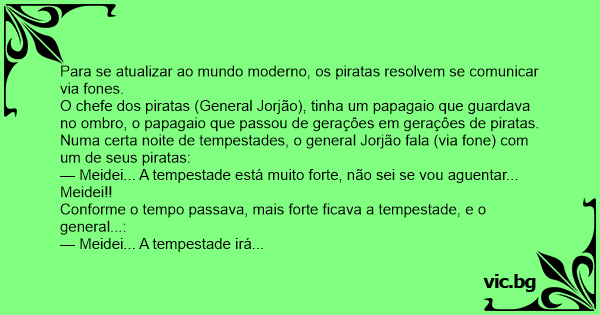 Numa certa noite de tempestades, o general Jorjão fala (via fone) com um de seus piratas:
