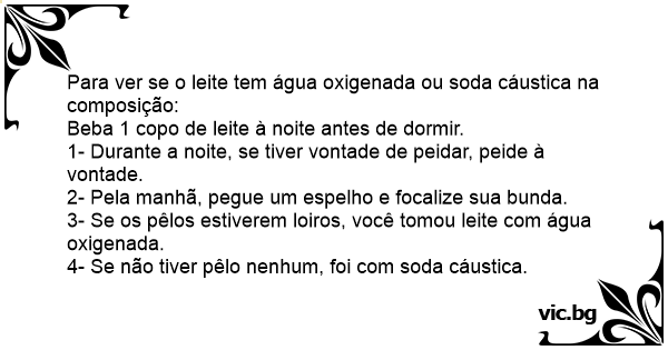 Para ver se o leite tem água oxigenada ou soda cáustica na composição:
