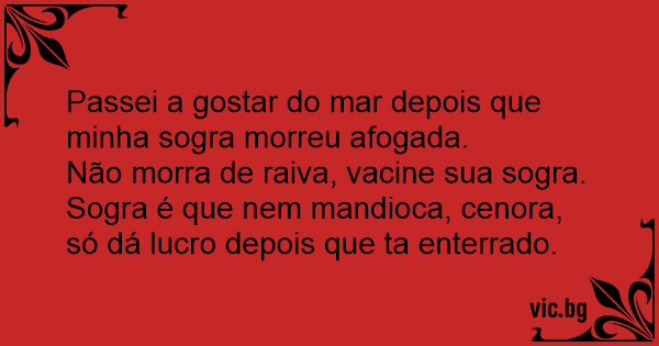 Sogra é que nem mandioca, cenora, só dá lucro depois que ta enterrado.