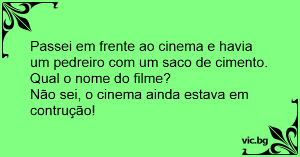 Passei em frente ao cinema e havia um pedreiro com um saco de cimento.